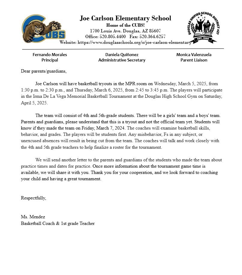 Joe Carlson, CUBS families, join us at our next PTSO meeting! Please see flyer for the Agenda. We look forward to seeing you there!